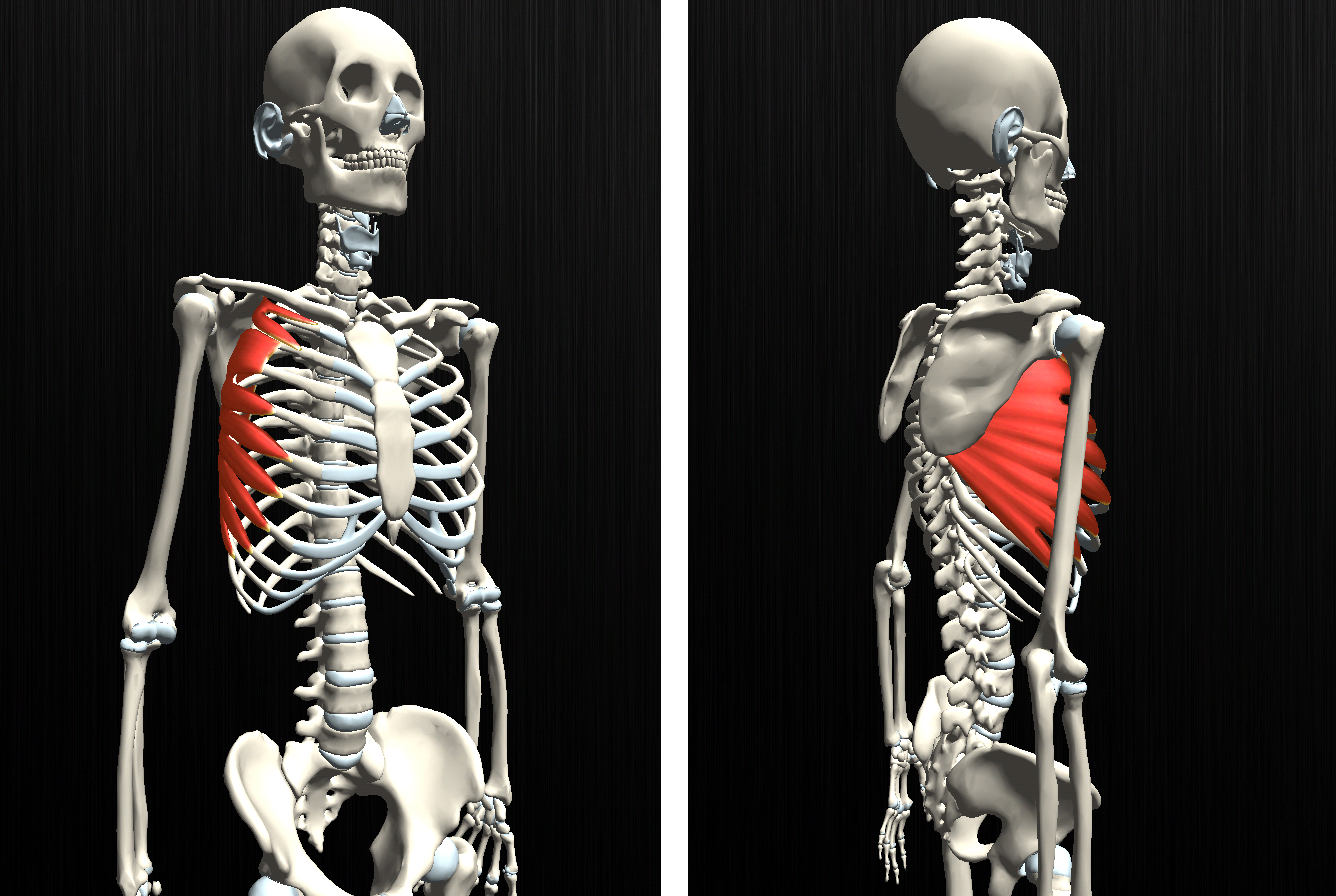 今回は肋骨の横についている前鋸筋(ぜんきょきん)という筋肉紹介させていただきます。※下の写真が前鋸筋(ぜんきょきん)です。