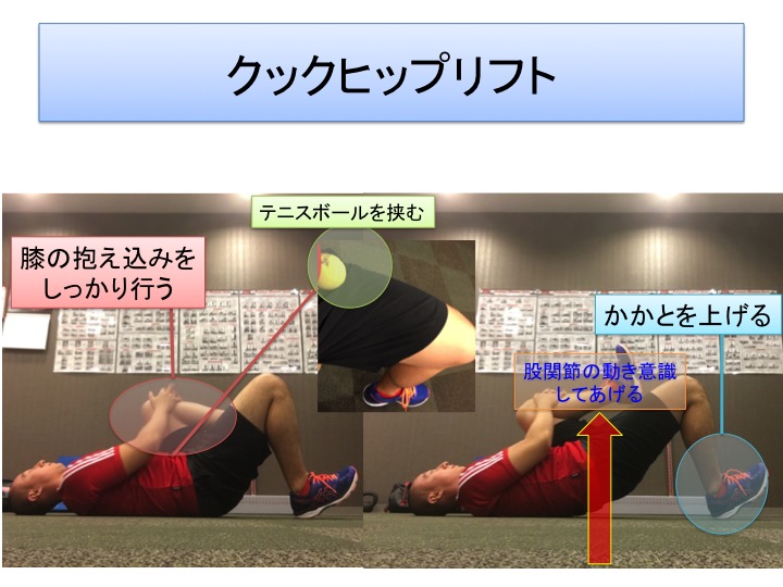 そこで股関節がしっかりと動かせるように出来るオススメのクックヒップリフトというエクササイズをご紹介いたします。
