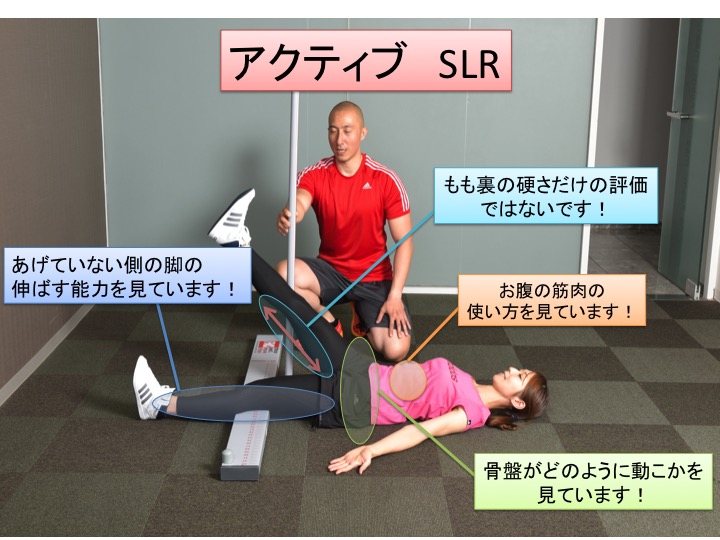 とてもシンプルな評価方法なのですが、これで骨盤の動きや、体幹の使い方、あげていない側の脚の伸展能力など、様々なことがこれでわかってしまいます。