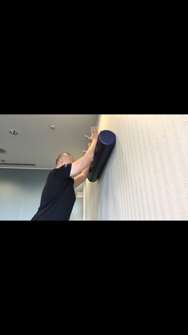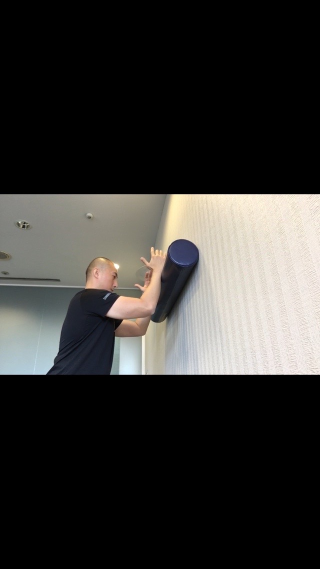 この種目はフォームローラーやタオルなどを壁にあてます。