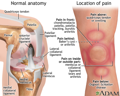 例えば、膝のお皿の下が痛みあるという場合、解剖学的には膝蓋靭帯の下にある膝蓋下脂肪体や膝蓋靭帯が伸びなくなっていたり、大腿四頭筋の筋萎縮が起きているのだと予測できます。