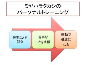 お客様が苦手なことを把握して、苦手なことを克服できるようにメニューを組んで、ある程度負荷をかけても大丈夫な体になってから筋トレを行うことをお勧めしていますが、その方が置かれている状況にもよります。