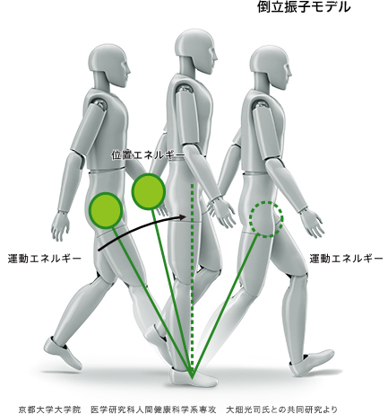 人間の歩行を倒立振子に例えると、