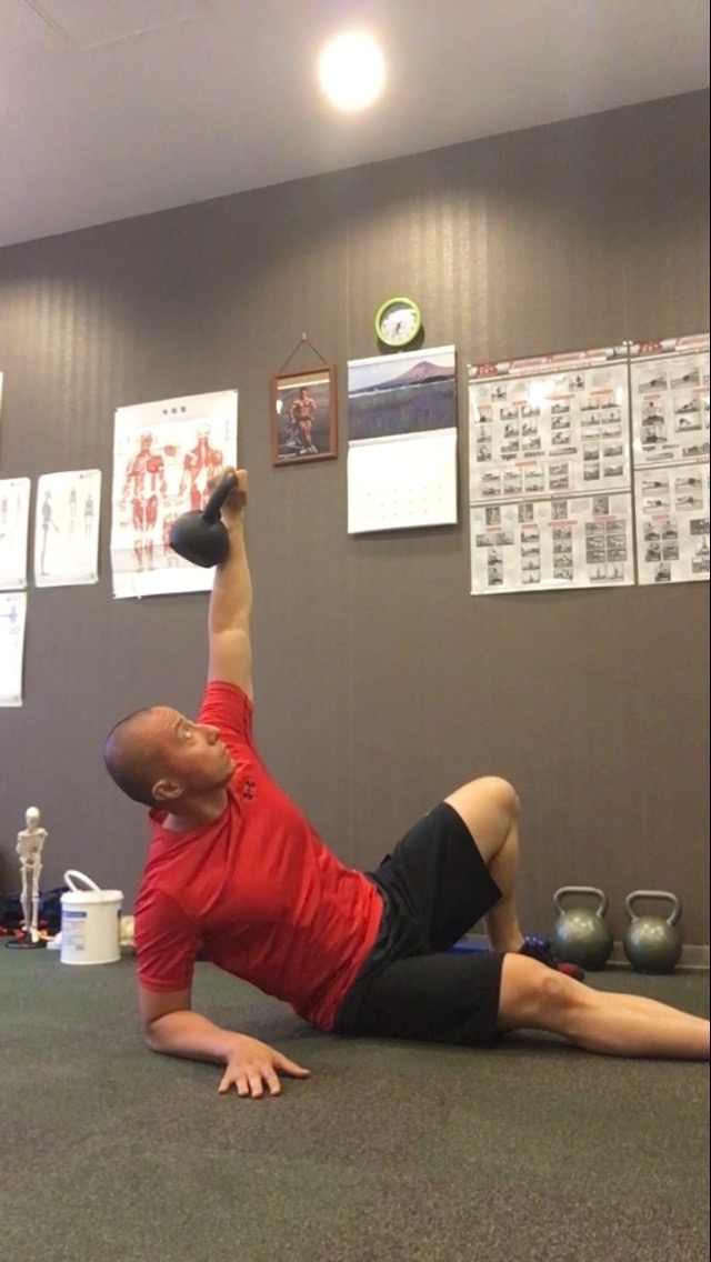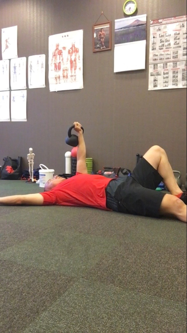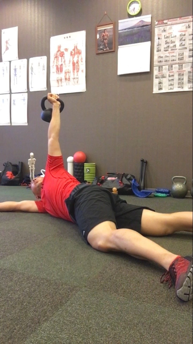 骨盤の歪みが整ったところで、重りを持って再び肋骨を柔からくする運動です。