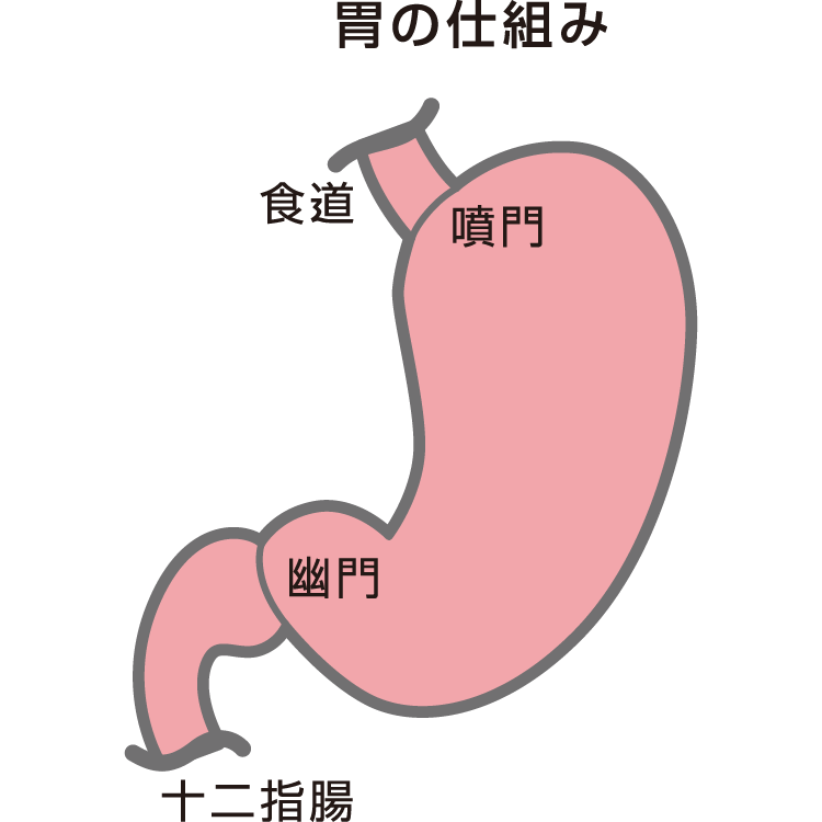 食道につながる胃の入り口を噴門(ふんもん)と言います。