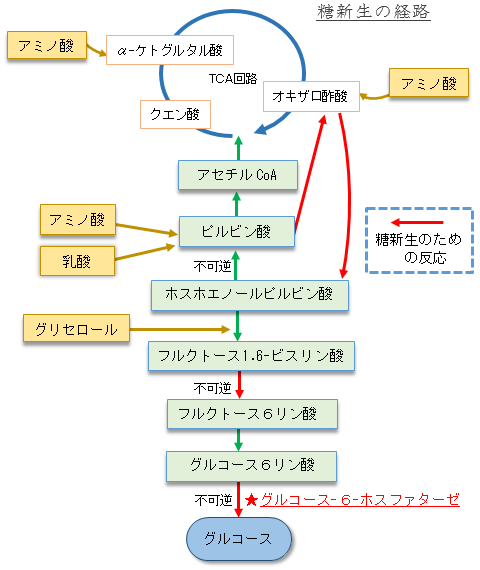少し話が難しくなりますが、糖新生の経路というものがあります。