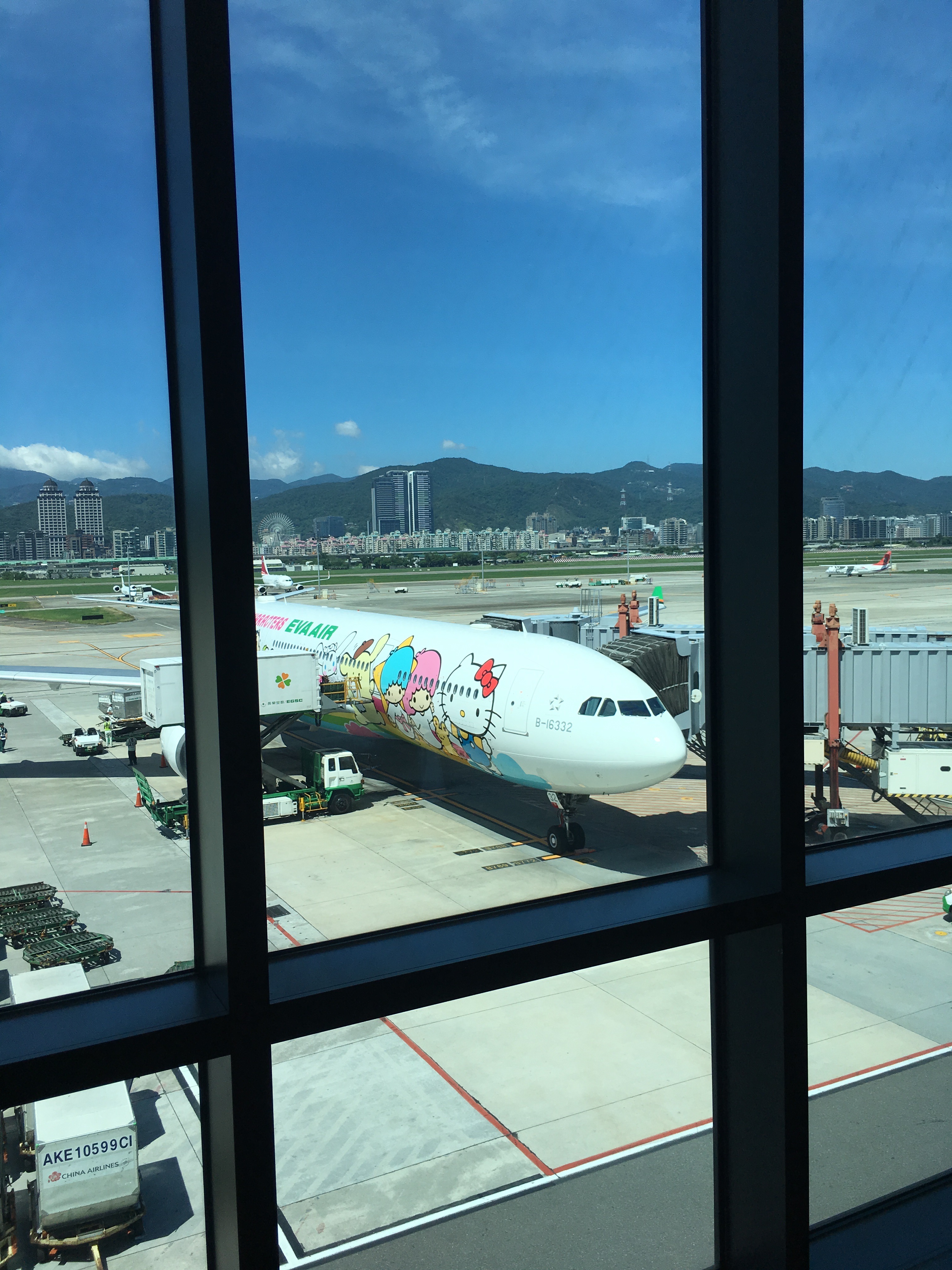 飛行機は可愛いキティちゃんでやって来ました(笑)。
