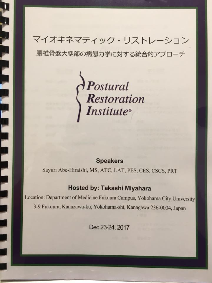 さて、さっきから出てくる「PRI」で何?と気になる方も多いと思いますが、一言でお伝えするのは難しいのですが、今回行ったマイオキネマティック・リストレーションコースの日本語の副題が「腰椎骨盤大腿部の病態力学に対する統合的アプローチ」とついております。