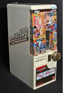 最初はこの類のカードは紐に吊るしてあって、おばちゃんにお金を渡して、紐で釣ってあるカードを引く形式でしたが、進化版が下の写真の機械になり、当時から取集癖があった小学生のミヤハラは連日「おまけ屋」に通ってはカードダスにお小遣いを費やして、価値が最も高い「金のキラキラ」と呼ばれているカードを出す為に必死でした。