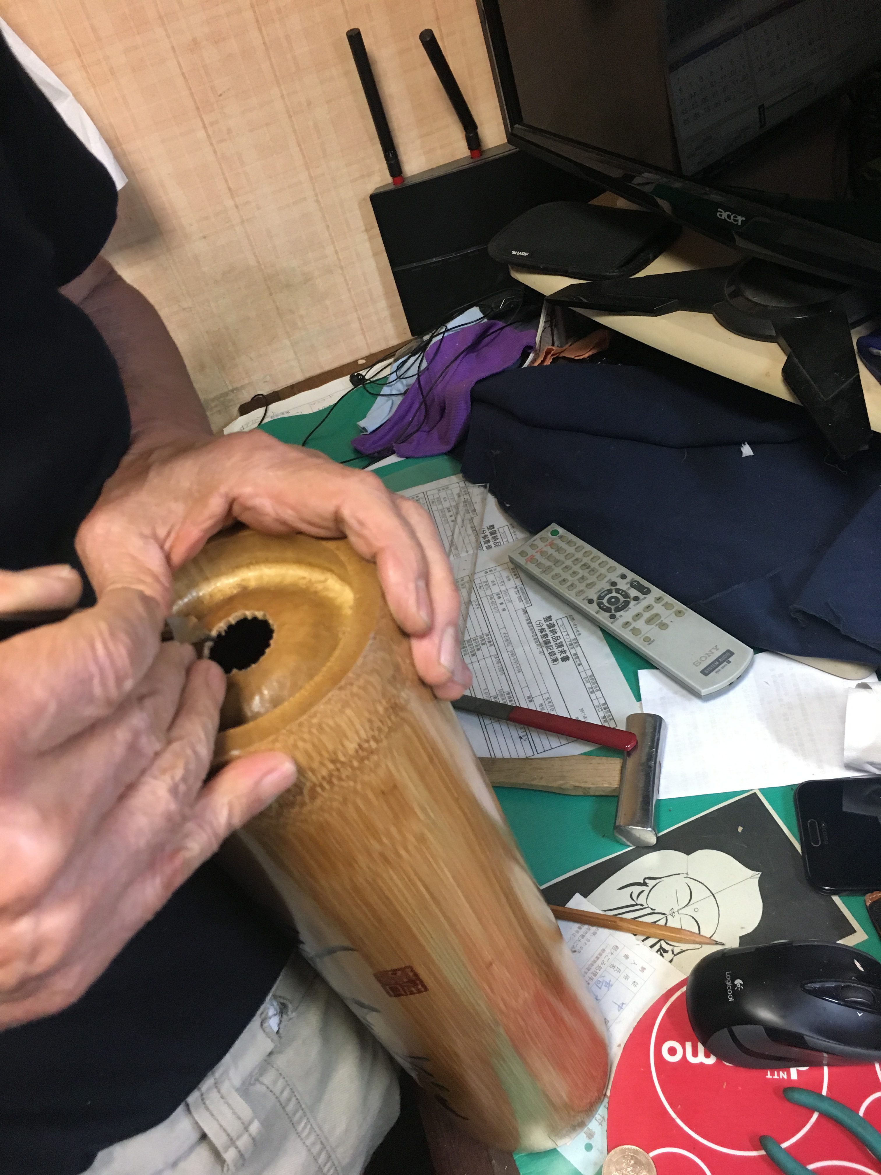 今日は仕事を終えてから、幼少期台湾で過ごしていた時にお世話になった幼稚園の先生からプレゼントしていただいた竹で造られた貯金箱に取り出し穴を作るために、木彫りの先生のご自宅へお伺いさせていただきました。