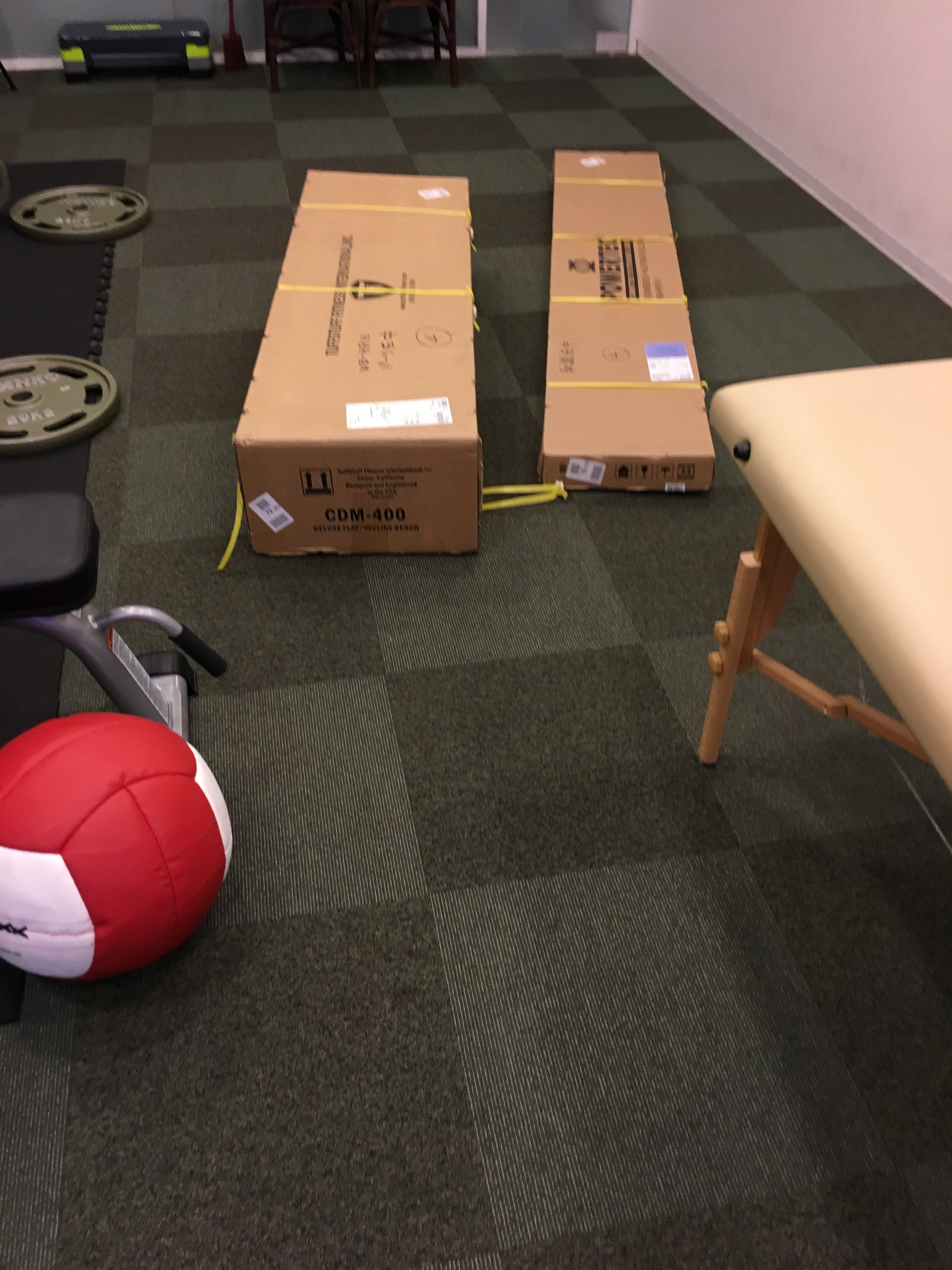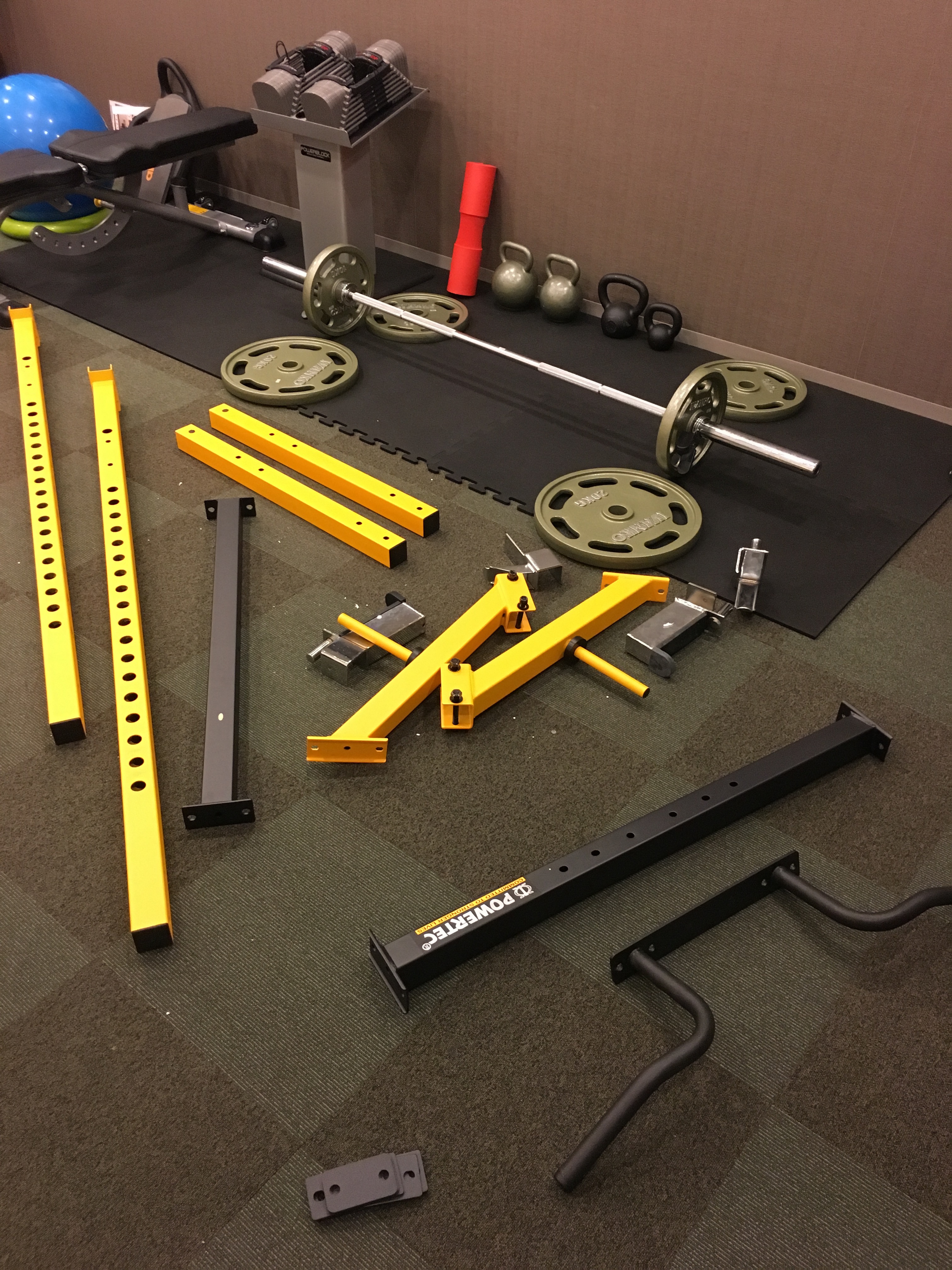 パーソナルトレーニングセッションを終えてから新しくやってきた器具の組み立てに取り組みました。